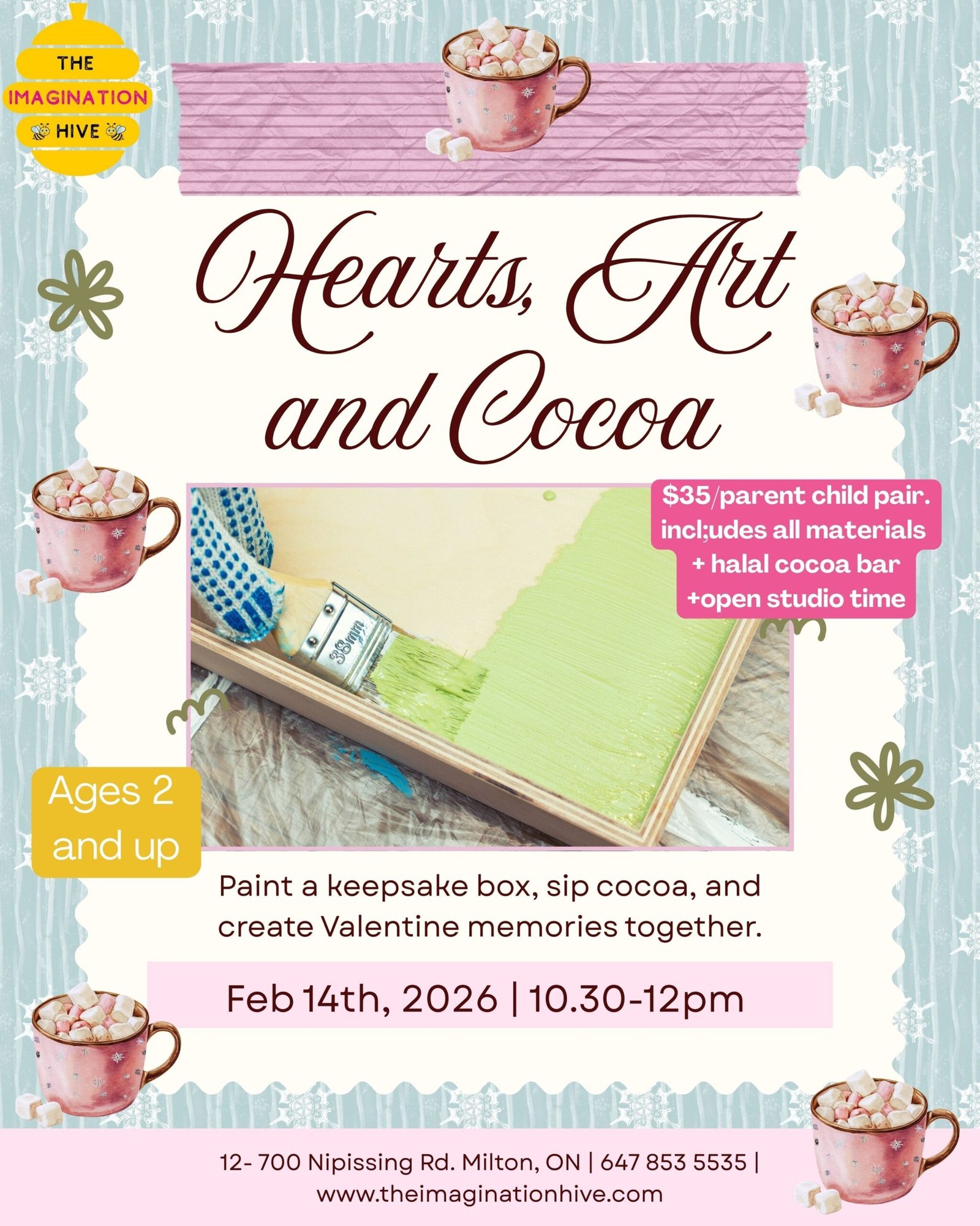 A Valentine Parent + Child Keepsake WorkshopCelebrate Valentine’s Day with a cozy, creative experience at The Imagination Hive! In this special workshop, parents and children will each paint and decorate their own keepsake box — a meaningful place to store love notes, drawings, and little treasures.