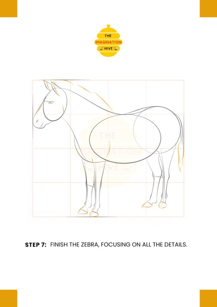 This foundation helps you keep the zebra’s proportions balanced from the beginning.