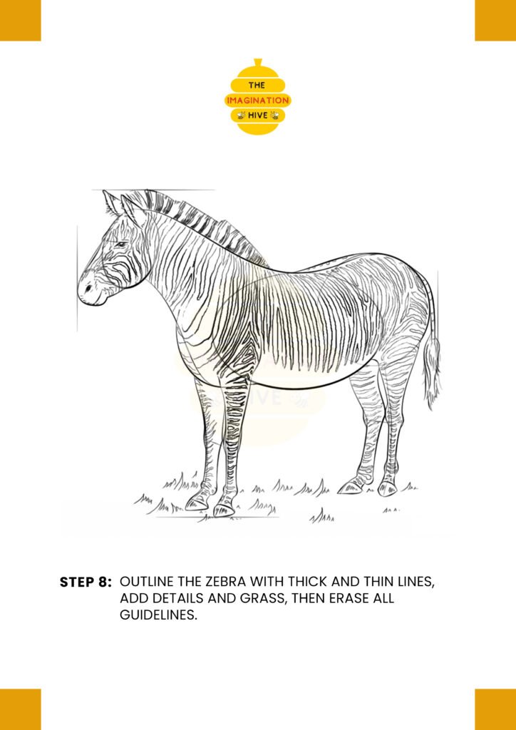 This final step turns your sketch into a complete zebra drawing.