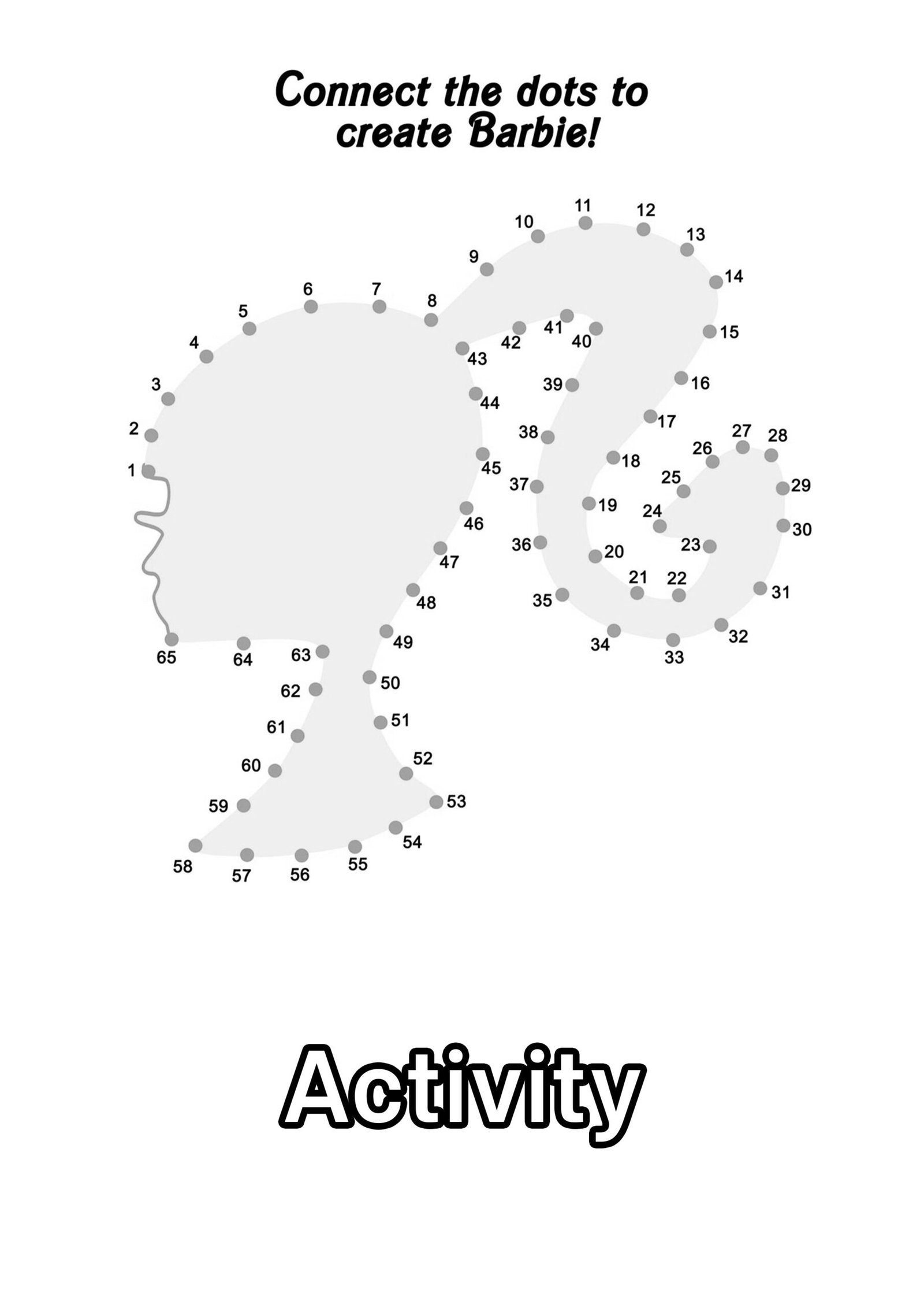 Here is the fun activity for the kids where your child can connect the dot and reveal the face of the barbie and you know what’s the fun part? That once the picture is complete you can fill in the color of your own choice to bring the barbie to life.