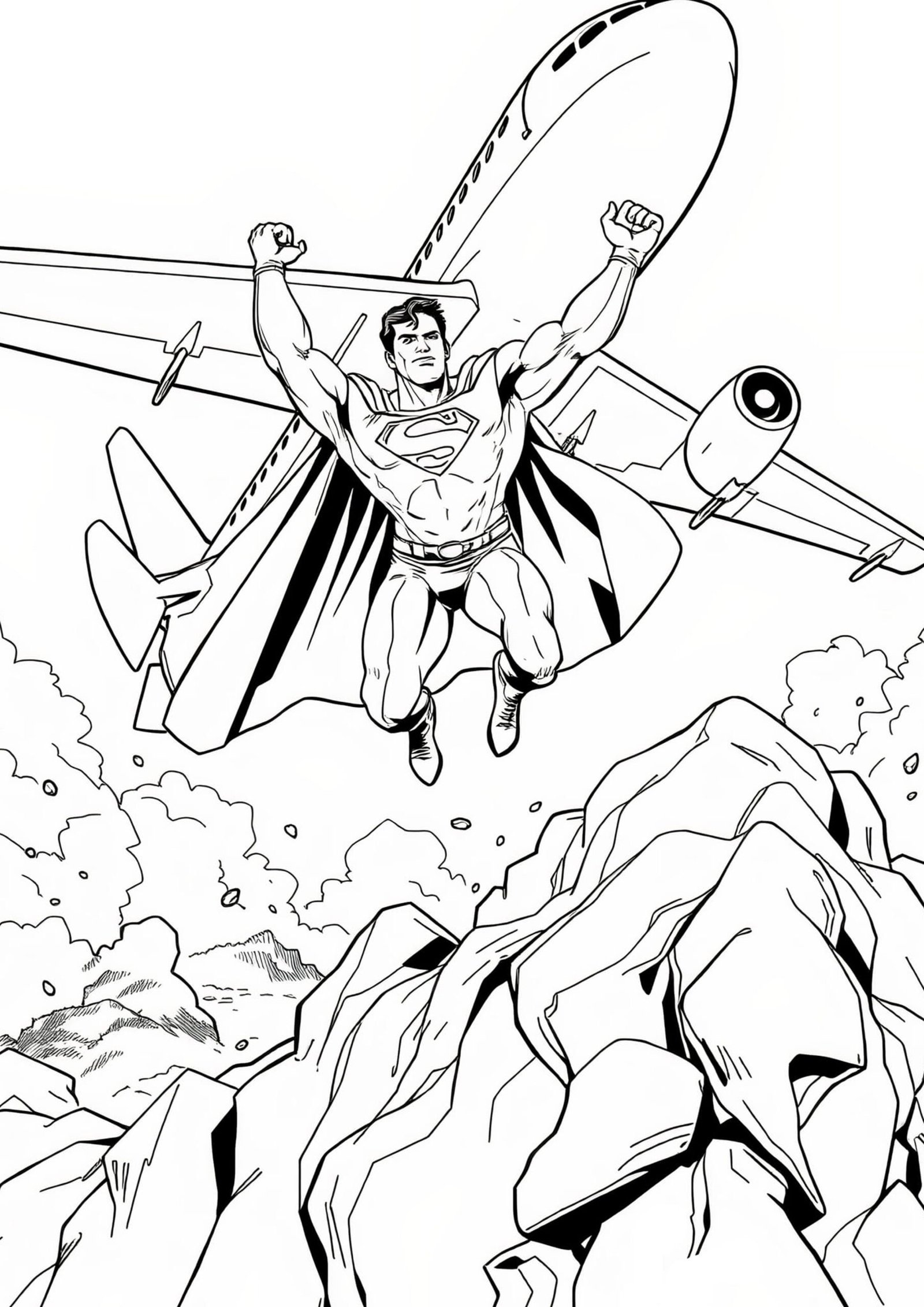 Superman Flying With An Airplane Coloring Page For Kids – Free Activity PDF Download
